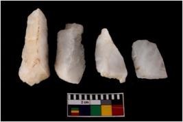 | Description / विवरण | There are n 4 flake cores. All of them are fully fluted flake cores without any trace of crested ridge flakes. Some are tapering at one end and some have sharp edges. |