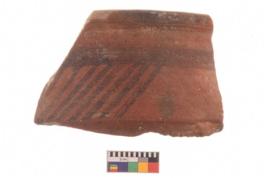 | Description / विवरण | Specimen of potsherd with decorative geometric painting, Type Black on Red ware . |