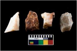 | Description / विवरण | There are n 4 of utilized worked cores.They show multidirectional irregular dominant scar pattern. Three have flat base and one is tapering at one end. |