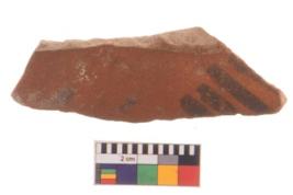 | Description / विवरण | Specimen of potsherd with decorative geometric painting, Type Black on Red ware . |