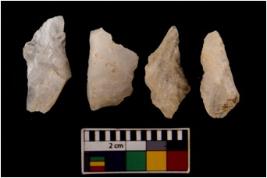 | Description / विवरण | There are n 4 flake cores. All of them are fully fluted flake cores without any trace of crested ridge flakes. Some are tapering at one end and some have sharp edges. |