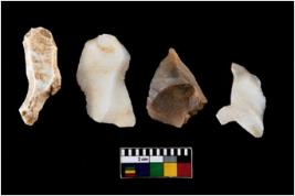 | Description / विवरण | There are n 4 of utilized worked cores.They show multidirectional irregular dominant scar pattern. Some are tapering at one end an sharp edges. |