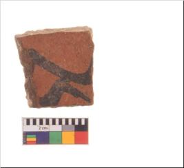 | Description / विवरण | Specimen of potsherd with decorative geometric painting, Type Black on Red ware . |