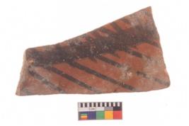 | Description / विवरण | Specimen of potsherd with decorative geometric painting, Type Black on Red ware . |