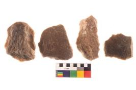 | Description / विवरण | There are n 04 of utilized worked flakes. They show multi-directional irregular scar pattern. One is tapering on one end. |
