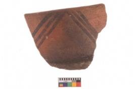 | Description / विवरण | Specimen of potsherd with decorative geometric painting, Type Black on Red ware . |