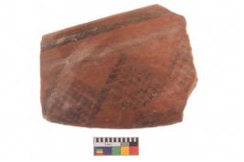 | Description / विवरण | Specimen of potsherd with traces of decorative geometric painting, Type Black on Red ware . |