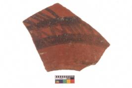 | Description / विवरण | Specimen of potsherd with decorative geometric painting, Type Black on Red ware . |