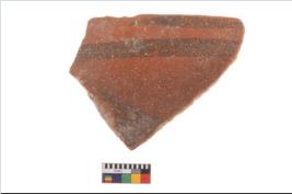 | Description / विवरण | Specimen of potsherd with decorative geometric painting, Type Black on Red ware . |