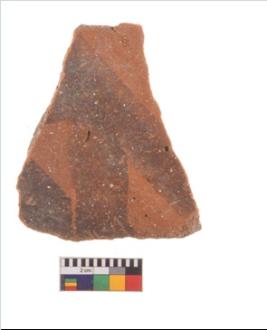 | Description / विवरण | Specimen of potsherd with decorative geometric painting, Type Black on Red ware . |