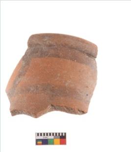 | Description / विवरण | Specimen of potsherd with traces of decorative geometric painting, Type Black on Red ware . |