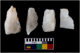 | Description / विवरण | There are n 4 flake cores. All of them are fully fluted flake cores without any trace of crested ridge flakes. Some are tapering at one end and some have sharp edges. |