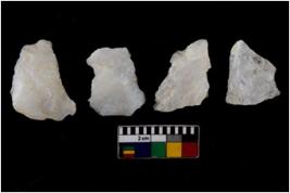 | Description / विवरण | There are n 4 flake cores. All of them are fully fluted flake cores without any trace of crested ridge flakes. Some are tapering at one end and some have sharp edges. |
