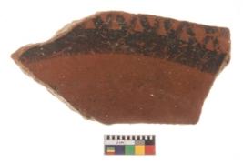 | Description / विवरण | Specimen of potsherd with decorative geometric painting, Type Black on Red ware . |