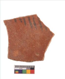 | Description / विवरण | Specimen of potsherd with traces of decorative geometric painting, Type Black on Red ware . |
