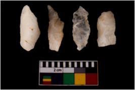 | Description / विवरण | There are n 4 flake cores. All of them are fully fluted flake cores without any trace of crested ridge flakes. Some are tapering at one end and some have sharp edges. |