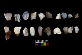| Description / विवरण | There are n 20 of utilized worked specimens. They show multidirectional irregular scar pattern. Some are tapering at one end and have sharp edges. |