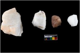 | Description / विवरण | There are n 4 of utilized worked cores.They show multidirectional irregular scar pattern. All have flat base and blunt edges. Among them one is curvilinear triangle, one is brownish in color due to impurities. All vary in size. |