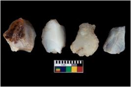 | Description / विवरण | There are n 4 flake cores. All of them are fluted flake cores without any trace of crested ridge flakes. Some have flat base. Some have blunted edges and few of them have sharp edges. |
