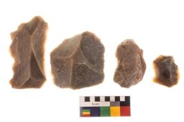 | Description / विवरण | There are n 04 of utilized worked flakes. They show multi-directional irregular scar pattern. One is tapering on one end. |
