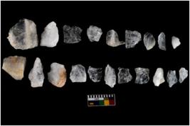 | Description / विवरण | There are n 20 flakes; among them some of them have pointed tip. Also some of them are arc shape with sharp edge. Some are sharp along with side retouching.There are few trapezium shaped flakes as well. |