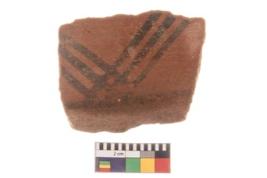| Description / विवरण | Specimen of potsherd with decorative geometric painting, Type Black on Red ware . |