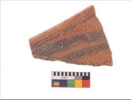 | Description / विवरण | Specimen of potsherd with decorative geometric painting, Type Black on Red ware . |