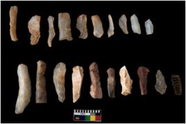 | Description / विवरण | There are n 20 of utilized worked specimens. They show multidirectional irregular scar pattern and have sharp edges. Some are tapering at one end and are elongated in shape. |