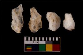| Description / विवरण | There are n 4 flake cores. All of them are fully fluted flake cores without any trace of crested ridge flakes. Some are tapering at one end and some have sharp edges. |
