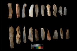 | Description / विवरण | There are n 20 of utilized worked specimens. They show multidirectional irregular scar pattern. Some are tapering at one end and are elongated in shape. |