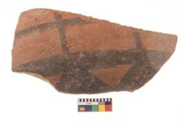 | Description / विवरण | Specimen of potsherd with decorative geometric painting, Type Black on Red ware . |