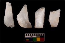 | Description / विवरण | There are n 4 flake cores. All of them are fully fluted flake cores without any trace of crested ridge flakes. Some are tapering at one end and some have sharp edges. |