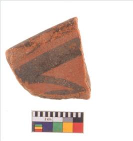 | Description / विवरण | Specimen of potsherd with decorative geometric painting, Type Black on Red ware . |