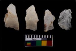 | Description / विवरण | There are n 4 flake cores. All of them are fully fluted flake cores without any trace of crested ridge flakes. Some are tapering at one end and some have sharp edges. |