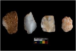 | Description / विवरण | There are n 4 of utilized worked cores. They show multidirectional irregular dominant scar pattern. One of them is tapering at one end. |