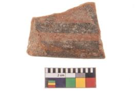 | Description / विवरण | Specimen of potsherd with traces of decorative geometric painting, Type Black on Red ware . |