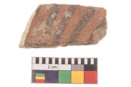 | Description / विवरण | Specimen of potsherd with decorative geometric painting, Type Black on Red ware . |