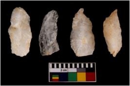 | Description / विवरण | There are n 4 flake cores. All of them are fully fluted flake cores without any trace of crested ridge flakes. Some are tapering at one end and some have sharp edges. |