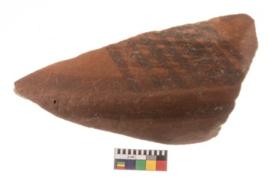 | Description / विवरण | Specimen of potsherd with decorative geometric painting, Type Black on Red ware . |