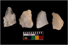 | Description / विवरण | There are n 4 flake cores. All of them are fully fluted flake cores without any trace of crested ridge flakes. Some are tapering at one end and some have sharp edges. |