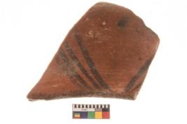 | Description / विवरण | Specimen of potsherd with decorative geometric painting, Type Black on Red ware . |