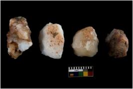 | Description / विवरण | There are n 4 of utilized worked cores. They show multidirectional irregular dominant scar pattern. One of them is tapering at one end. |