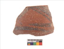 | Description / विवरण | Specimen of potsherd with decorative geometric painting, Type Black on Red ware . |