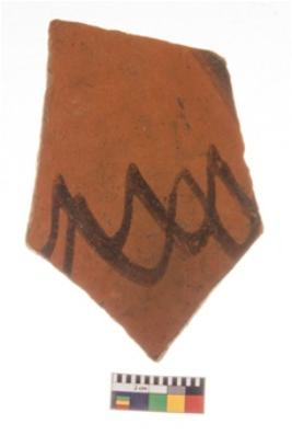 | Description / विवरण | Specimen of potsherd with decorative geometric painting, Type Black on Red ware . |