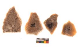 | Description / विवरण | There are n 04 of utilized worked flakes. They show multi-directional irregular scar pattern. One is tapering on one end. |