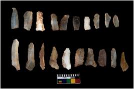 | Description / विवरण | There are n 20 of utilized worked specimens. They show multidirectional irregular scar pattern and have sharp edges.. Some are tapering at one end and are elongated in shape. |