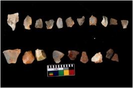 | Description / विवरण | There are n 20 of utilized worked core flakes.They show multi-directional irregular scar pattern. Some are tapering on one end. |