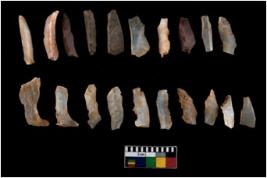 | Description / विवरण | There are n 20 of utilized worked specimens. They show multidirectional irregular scar pattern. Some are tapering at one end and have sharp edges. |