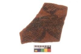 | Description / विवरण | Specimen of potsherd with decorative geometric painting, Type Black on Red ware . |