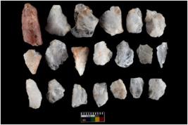 | Description / विवरण | There are n 20 flakes; among them some of them have pointed tip. Also some of them are arc shape with sharp edge. Some are sharp along with side retouching.There are few trapezium shaped flakes as well. |